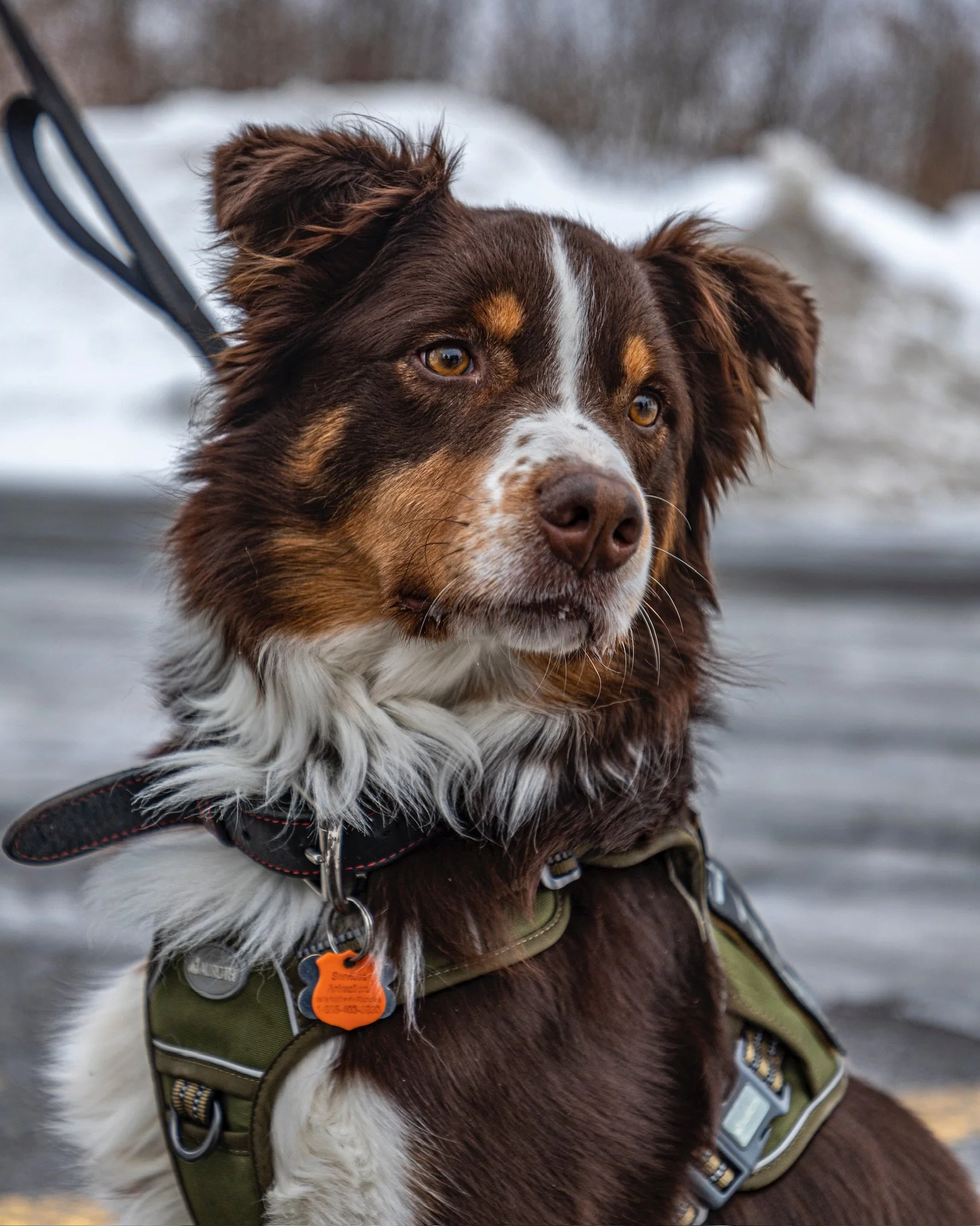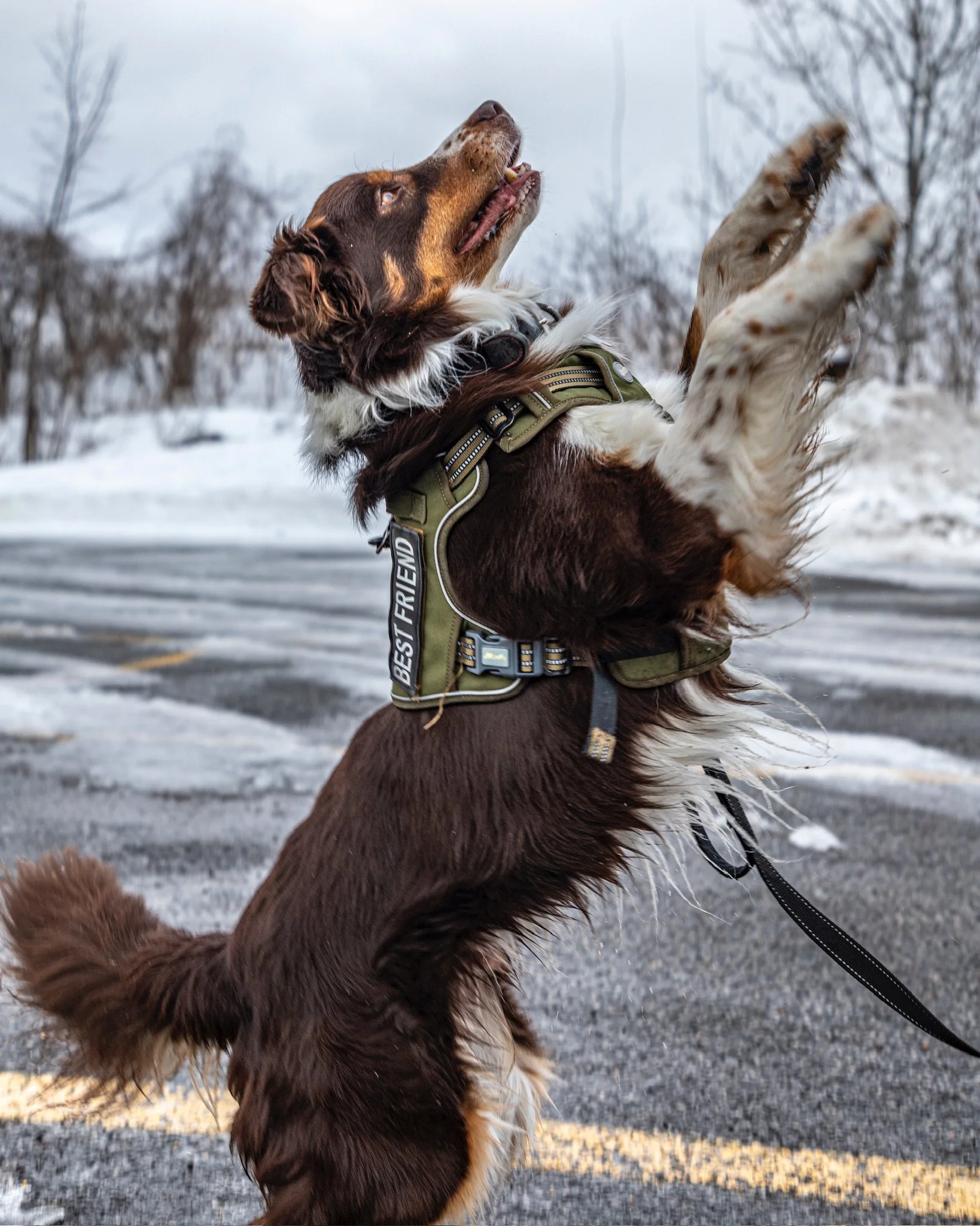 Peut aboyer aprĂšs dâautres chiens en laisse (en progrĂšs constant grĂące au travail en cours)